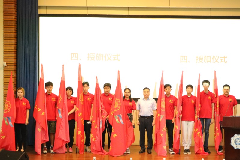辅导员马赛老师介绍暑期实践具体安排后,2020级本科生周子晗同学作为员工代表发言。最后,崔书记为暑期实践院级团队的各位代表授旗,并宣布bw西汉姆联暑期实践活动正式启动。