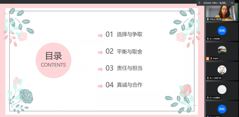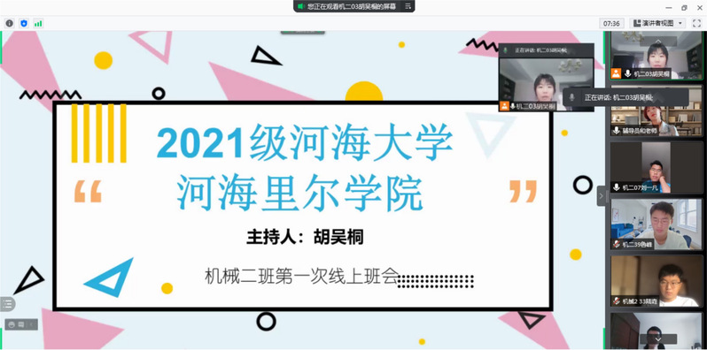 9月10日上午9:40,各班线上班会通过腾讯会议准时召开,2021级辅导员和倩倩老师和2021级各班员工参会,各班临时班长主持会议。