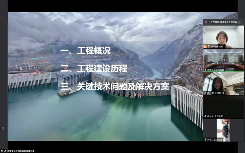 作为在建规模全球第一、单机容量世界第一、装机规模全球第二的金沙江白鹤滩水电站,于今年6月28日,首批机组正式投产发电。作为这项超大工程的设计总工程师徐建荣教授分别从工程概况、工程建设历程、关键技术问题及解决方案三个方面向大家详细介绍了金沙江白鹤滩水电站。将近一个半小时的讲解,使同学们对这项可称为世界水电发展过程中里程碑式的水电工程有了整体的了解,对自己当前所学专业有了更深刻的认识,也极大激发了同学们的自信心和学习热情,同时,与会师生就自己关心的如“水利工程建设与生态环境保护”等问题向徐教授请教,徐教授做了耐心、专业的回答,师生们纷纷表示受益匪浅。