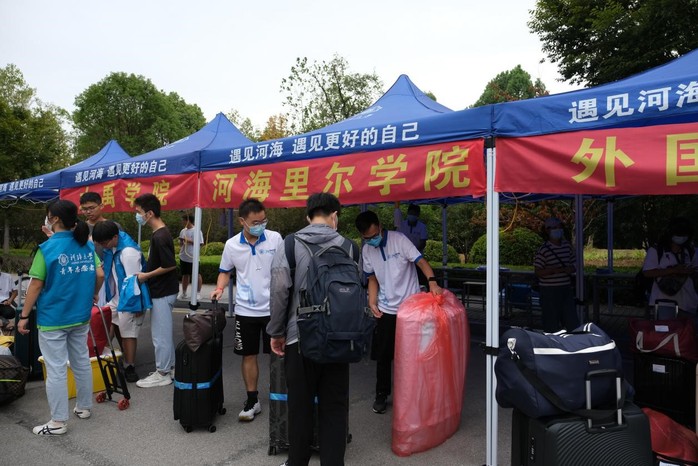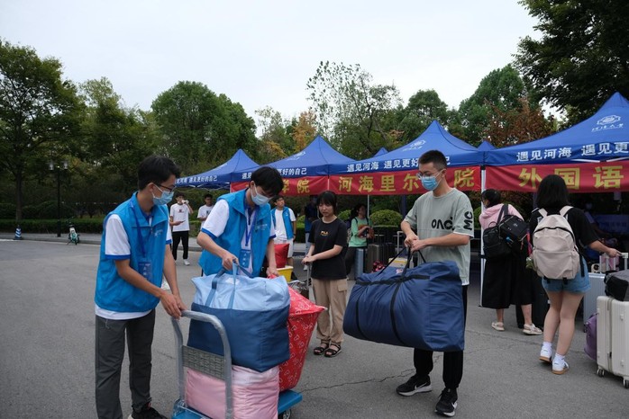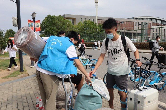 宿舍楼下,新生小海狸在热情的“拎包大侠”们的帮助下,顺利入住宿舍,新“家”生活即将开启。