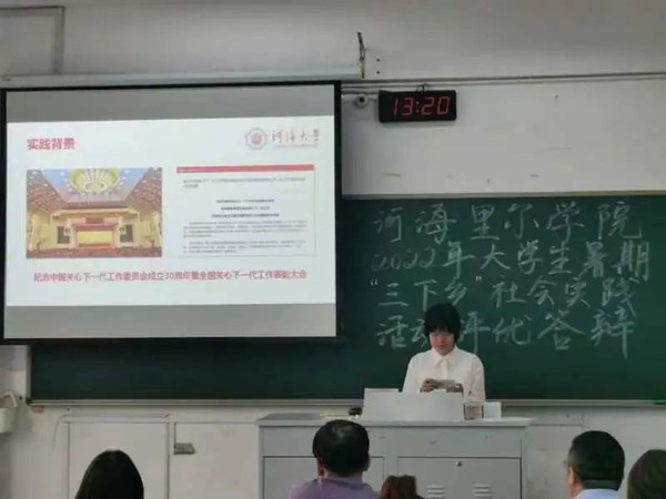答辩过程中,各团队发言人用PPT、视频等方式对团队暑期社会实践活动作全面总结汇报,具体包括实践目的、实践过程以及成果展示等,分享了小队成员的收获与感悟。