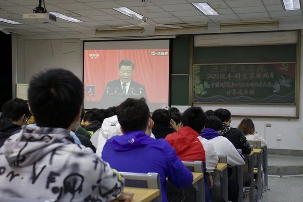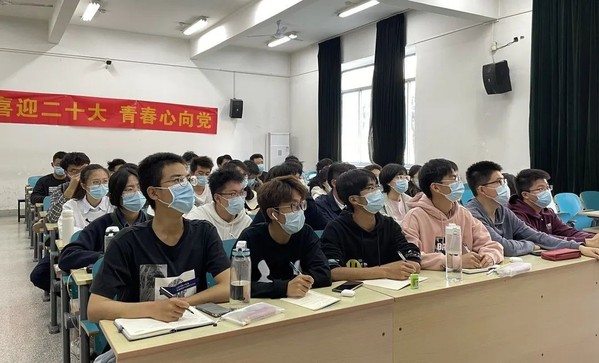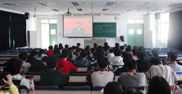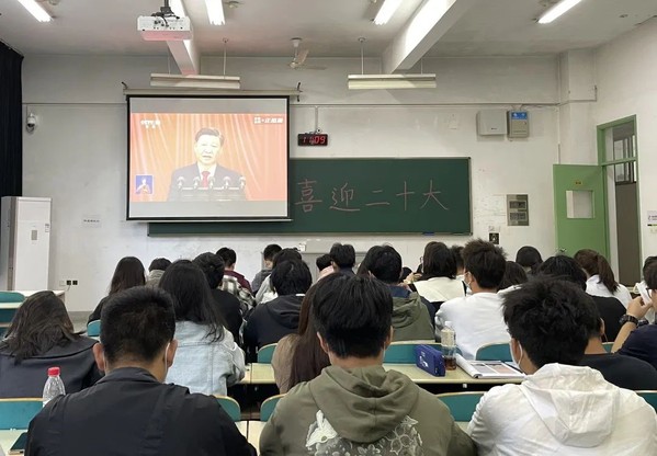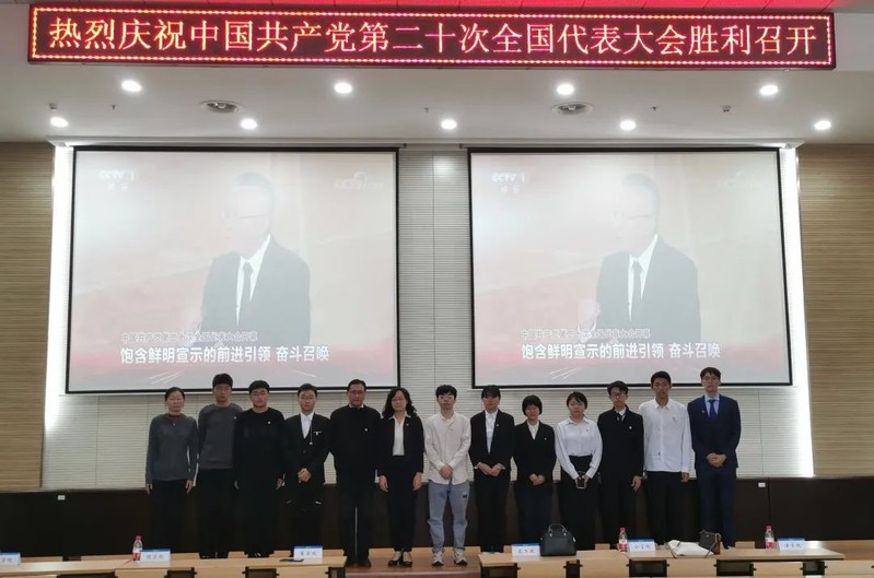 为了更好地组织观看直播,学院设置了江宁校区主会场、员工党员及入党积极分子分会场、员工骨干分会场、年级分会场等4个线下会场,以图文、视频等形式及时展现学院师生聆听党的二十大报告的生动场景,见证他们关注国家大事、体现青年担当的热情。其他未参加集中观看的同学,通过线上直播收看。