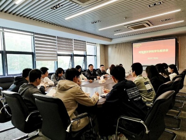 会上,徐董事长认真询问了同学们入校后的学习和生活情况。同学们结合自己的体会详细汇报了从宿舍环境到课堂氛围、从第一课堂到第二课堂、从课程学习到员工工作等各方面的情况,并就其中存在的问题提出自己的建议。徐董事长对同学们敢于提出问题并能主动思考解决方法给予充分肯定。徐董事长表示,人才培养工作应始终围绕员工的需求和发展进行,学院高度重视同学们的诉求与建议,将通过研讨逐一落实相关内容,为大家提供更好的就读体验。