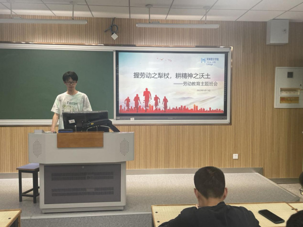 为加深同学们对劳动精神的感悟,5月13日下午,学院开展“握劳动之犁杖,耕精神之沃土”劳动主题班会。