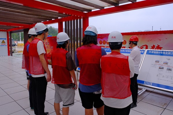 天津四号线是天津市轨道交通发展的重要项目,自2019年开工以来,历经两年多的建设施工,于2021年8月28日正式开通试运营。四号线作为天津市地铁网的重要组成部分,连接着南北两个重要城市轴线,串联起十余个城市板块,为天津市民和游客出行提供了更加便捷、快速、舒适的交通选择。为学习了解天津地铁四号线的建设成果,了解在地铁建设过程中设计、施工等各环节的工作内容及工作方式,以便为未来的就业工作积累宝贵经验,实践团在相关负责人的带领下,前往天津地铁四号线东段(在建)、西段(试运营)对地铁建设、运营、管理等方面进行实地考察。