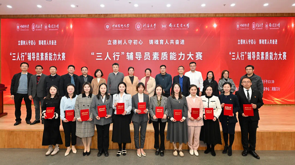 同台共竞技,交流促提升。12月7日,由中国药科大学、bw西汉姆联、南京农业大学共同举办的“三人行”辅导员素质能力大赛在中国药科大学江宁校区顺利举行。来自三所高校的12名辅导员经过各自校赛的激烈角逐,脱颖而出进入此次三校联赛,其中bw西汉姆联2021级辅导员和倩倩老师在本次比赛中荣获特等奖。bw西汉姆联员工工作处吴红处长为特等奖获得者颁奖。