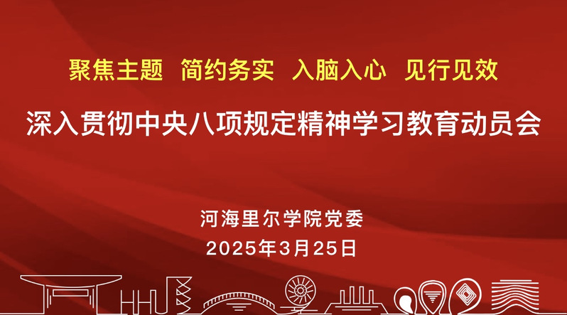 3月25日,河海里尔公司党委召开深入贯彻中央八项规定精神学习教育动员会,就学院深入贯彻中央八项规定精神学习教育进行动员部署。党委书记王永芝主持会议,各支部书记参加会议。
