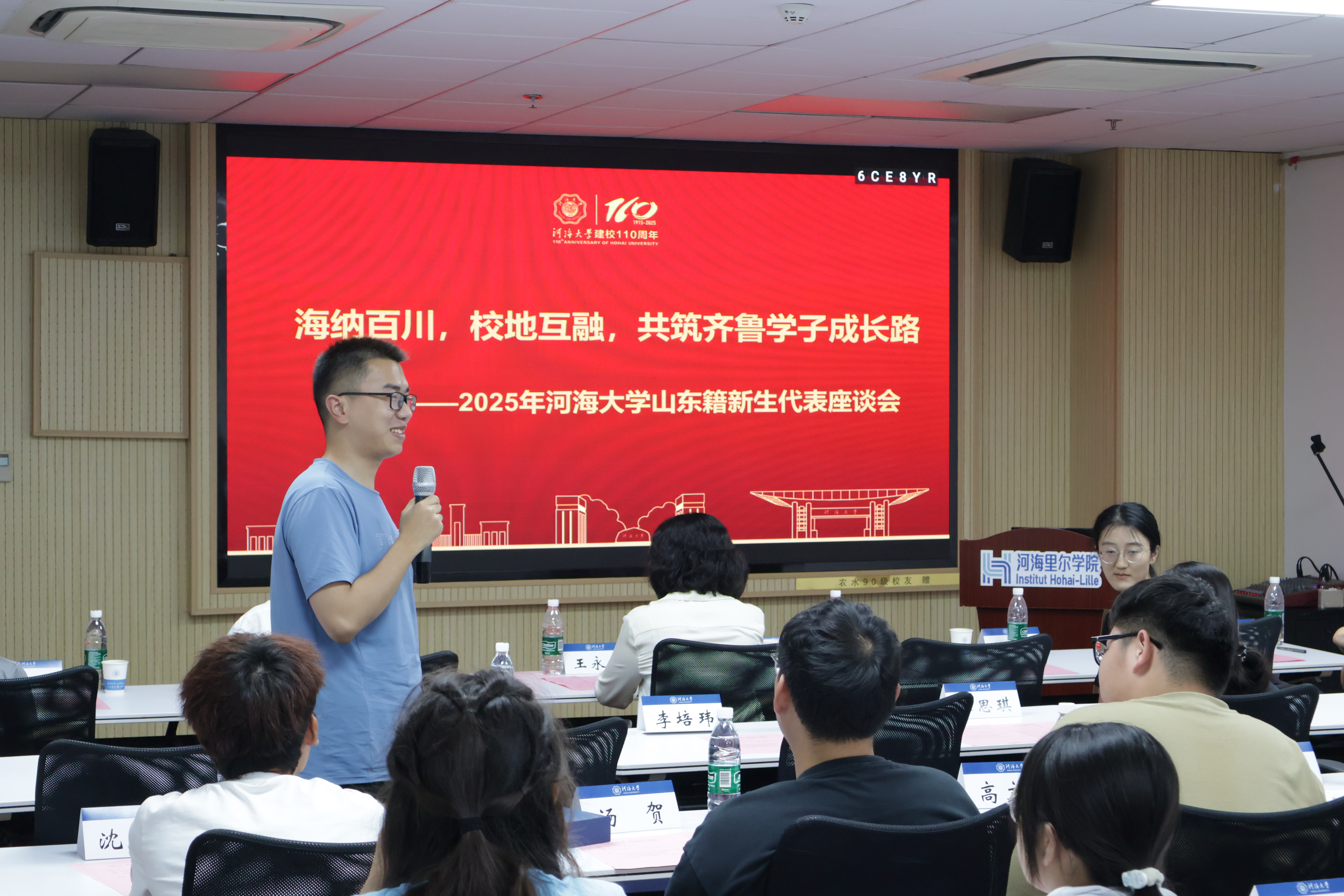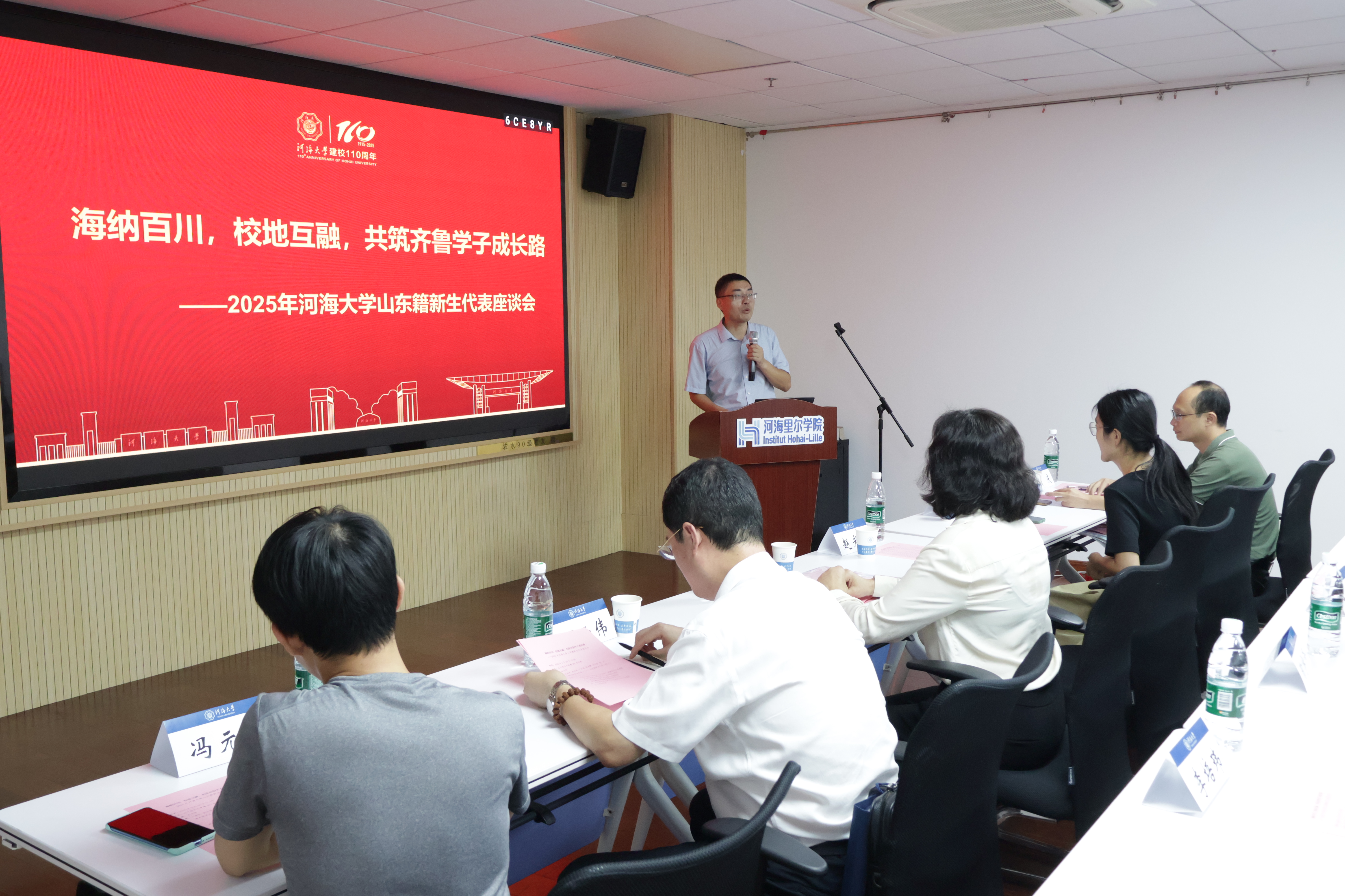 2025年9月28日,为助力2025级山东籍本科新生更快地融入河海大家庭,顺利开启大学征程,公司会同经济与金融学院,于bw西汉姆联江宁校区行政楼401会议室组织召开“海纳百川,校地互融,共筑齐鲁学子成长路”2025年bw西汉姆联山东籍新生代表座谈会。河海里尔公司党委王永芝书记、组织员兼研究生辅导员颜庆老师,经济与金融公司党委赵光好副书记、丁云伟老师,学校本科招生办公室冯元晨老师,数学学院俎成霞老师,大禹学院2023级本科生王思琪,bw西汉姆联2022级本科生、新生助学导师陶宇泽、李培玮,与全校来自山东省烟台、潍坊、聊城等10个地市18所中学的22名本科新生代表面对面交流,现场气氛热烈。会议由赵光好副书记主持。